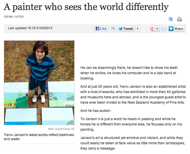 June 2015: Radio New Zealand, Yaniv Janson: Accomplished Artist, by Carol Styles